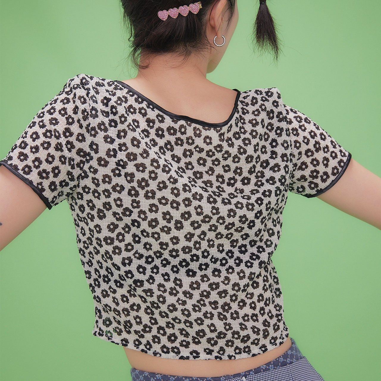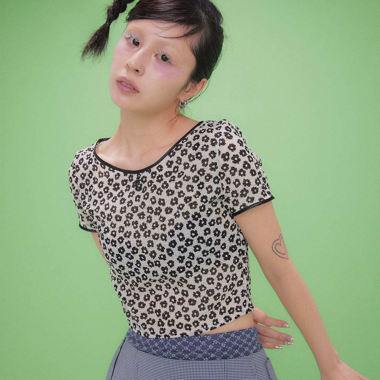 表の真ん中に刺繍された「95」がポイントのクロップ丈のトップス。
