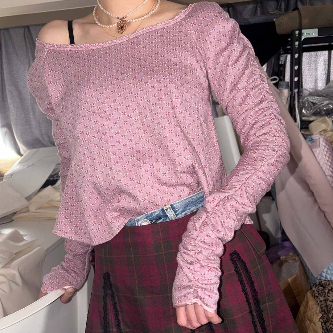 首周りが大きく作られているためオフショルダーでも片方だけドロップするスタイリングも可能
