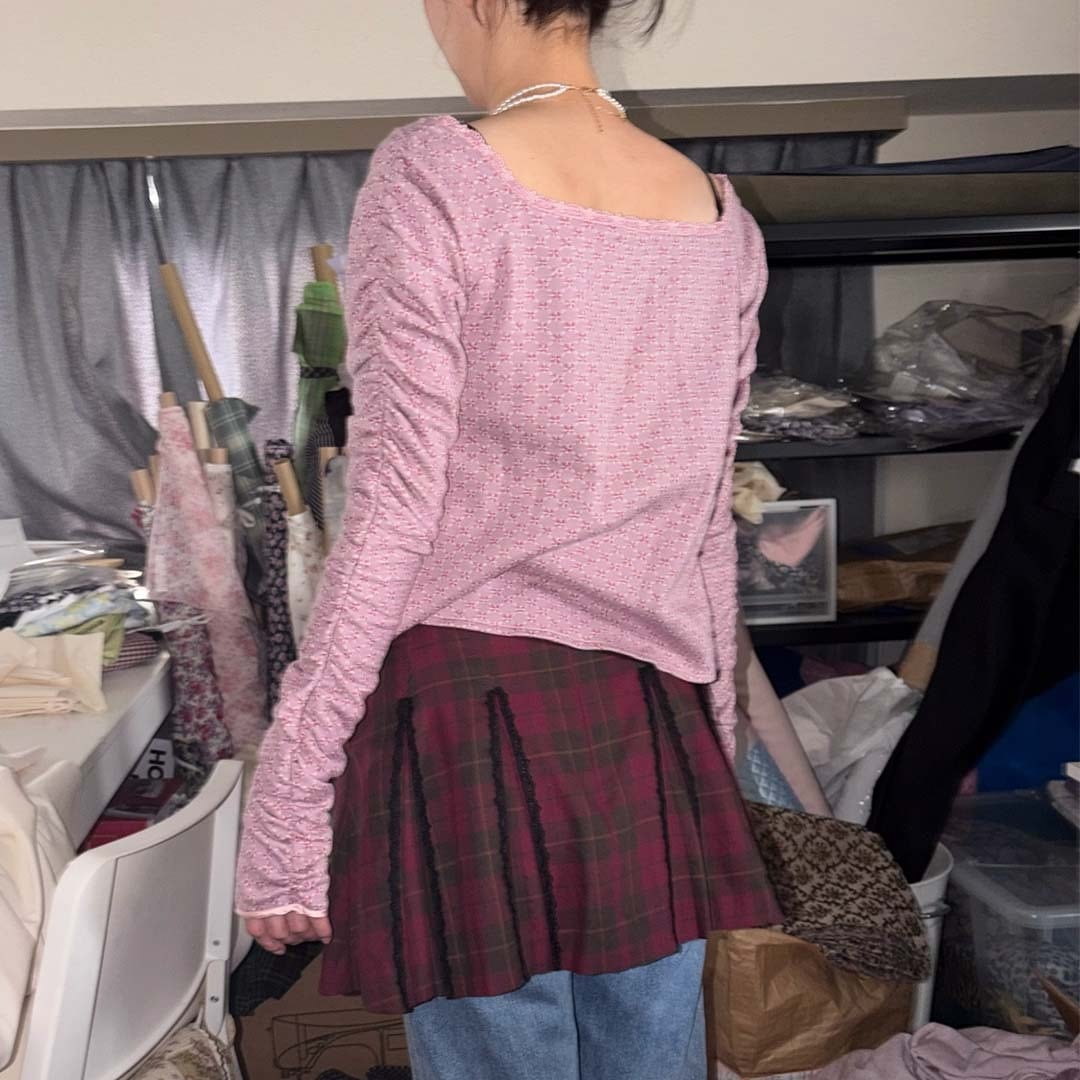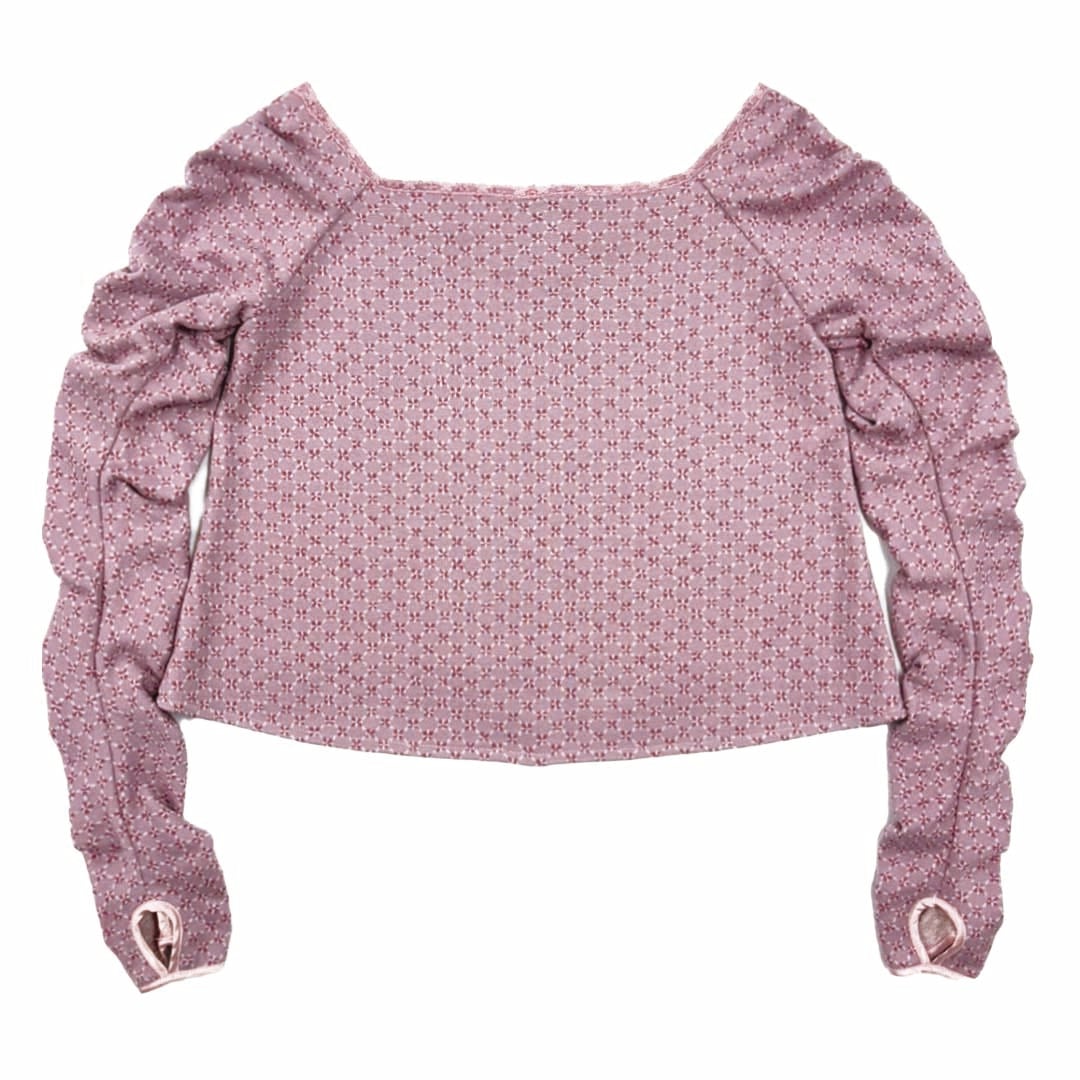 袖にたっぷりと入ったギャザーがポイントなトップス
