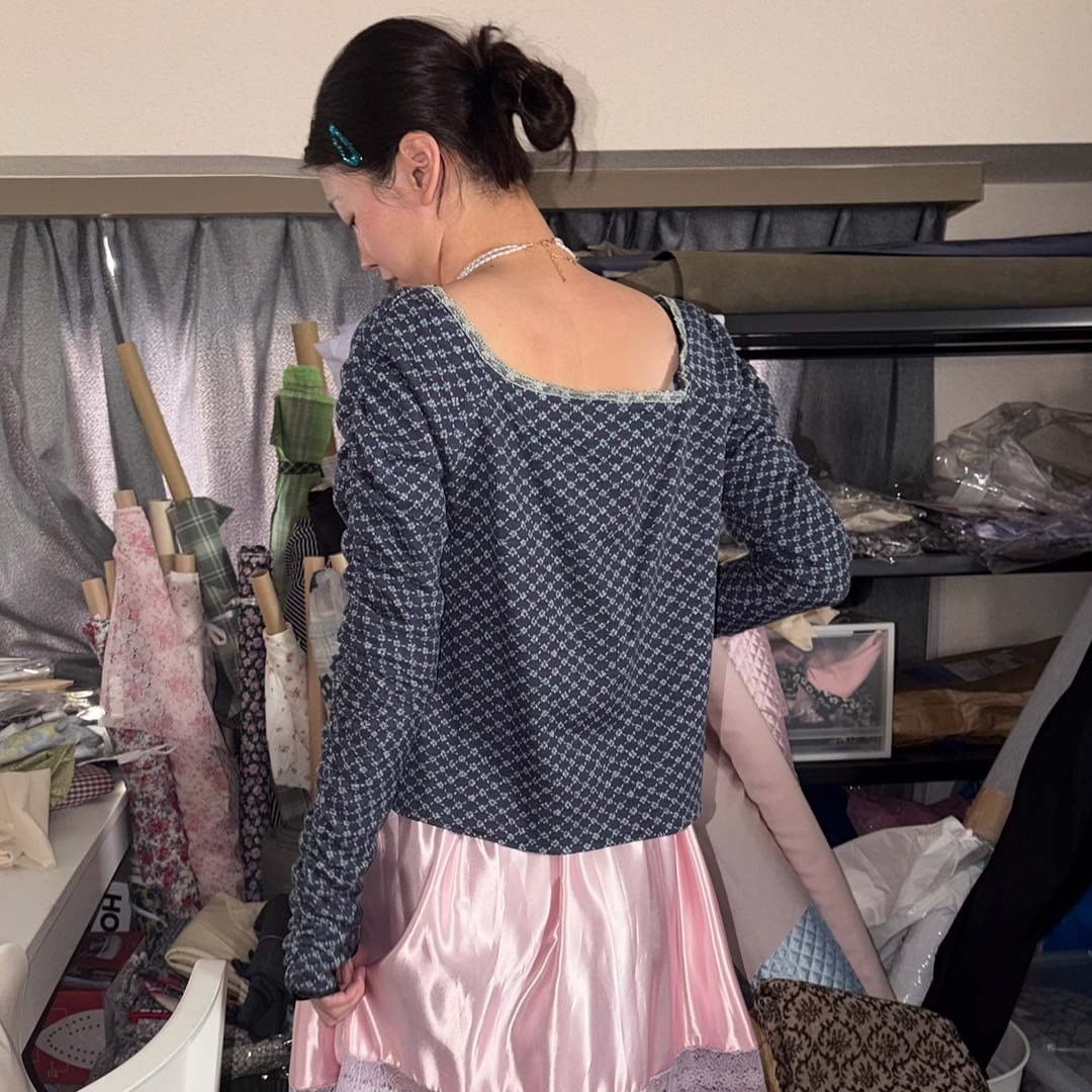 首周りが大きく作られているためオフショルダーでも片方だけドロップするスタイリングも可能
