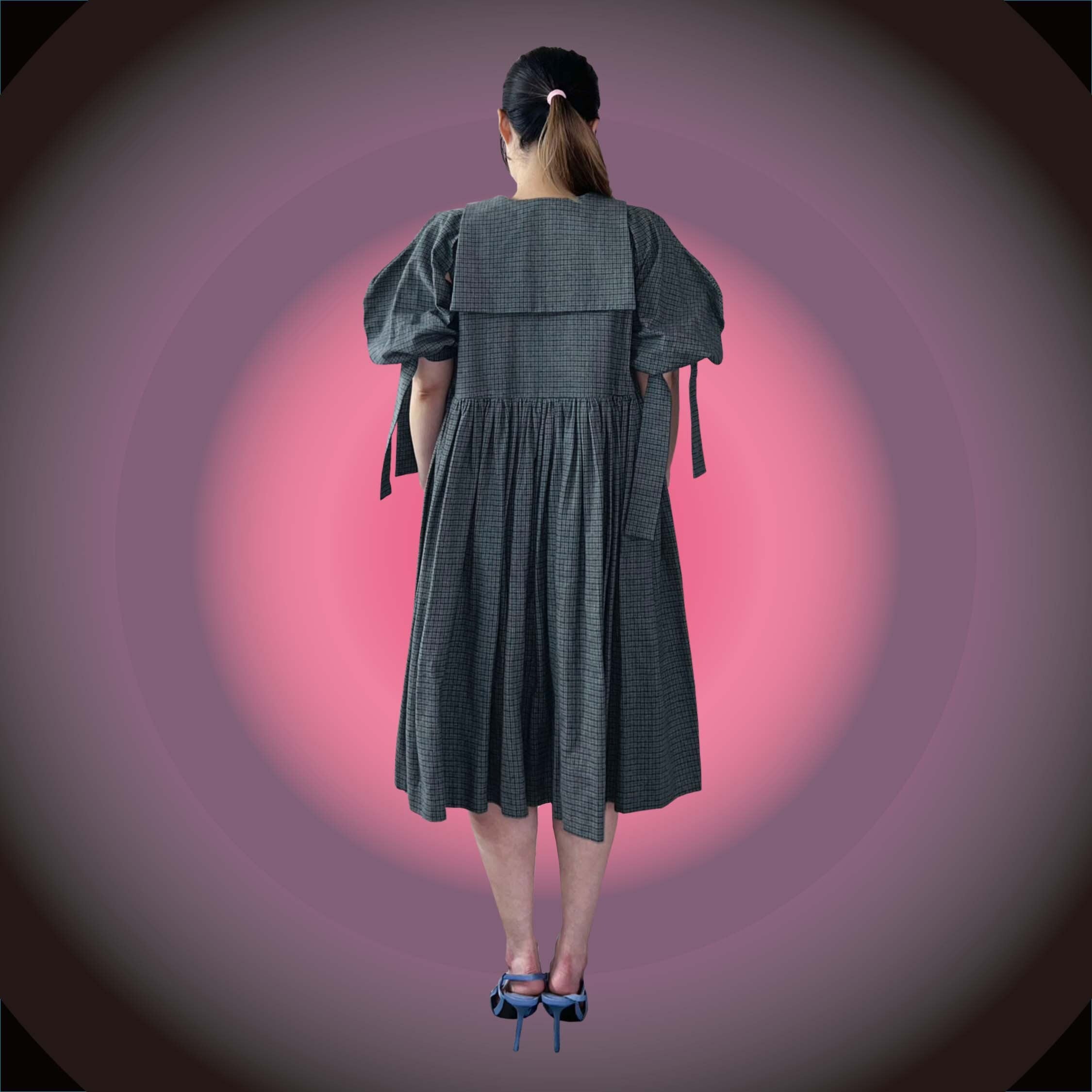 Check puff dress