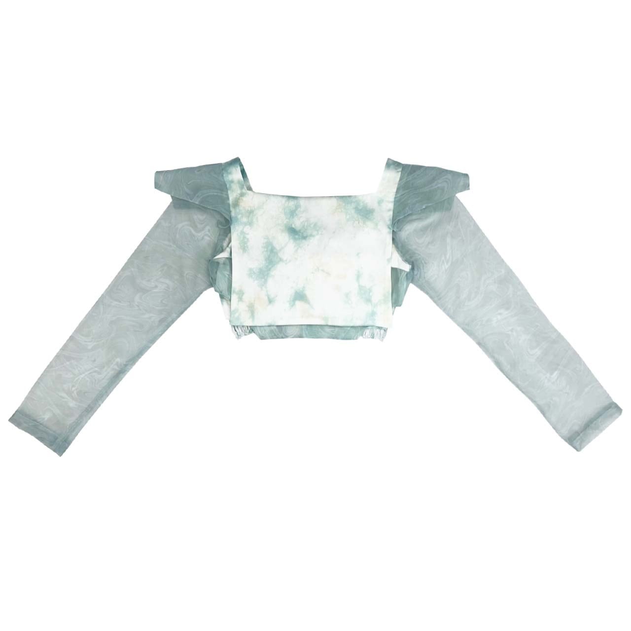 袖から繋がった羽のような肩の形に、前見頃が後ろのセーラーカラーになる